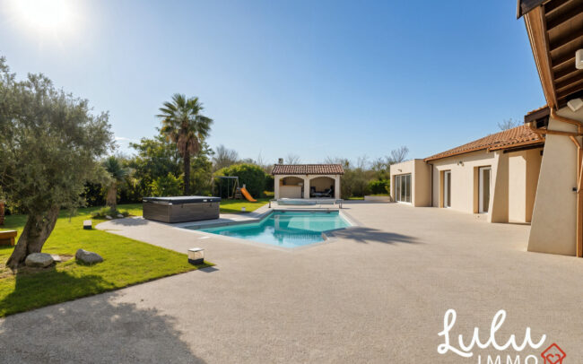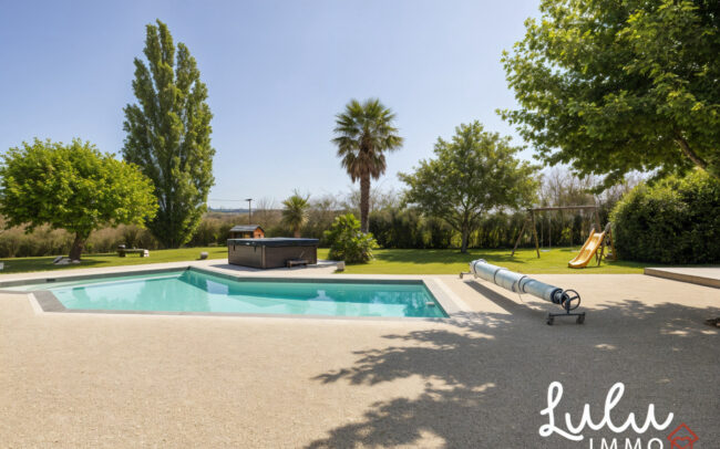 Les extérieurs, parfaitement entretenus, constituent un véritable prolongement de la maison avec une piscine chauffée par pompe à chaleur, un pool house, un spa jacuzzi, un terrain de pétanque, un double garage d’environ 60 m² avec cave en sous-sol, un portail motorisé et un éclairage extérieur par détecteurs de mouvement. Le tout s’intègre harmonieusement dans un jardin spacieux, sans vis-à-vis, facile à vivre et parfaitement adapté à un usage résidentiel durable.