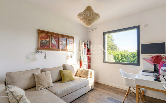 Construite par le propriétaire actuel, la maison a été pensée avec des prestations de qualité : pompe à chaleur air/eau plancher chauffant/rafraîchissant basse température plafond hydraulique chauffant et rafraîchissant double vitrage volets roulants BSO orientables sur la façade sud fibre optique visiophone panneaux photovoltaïques.